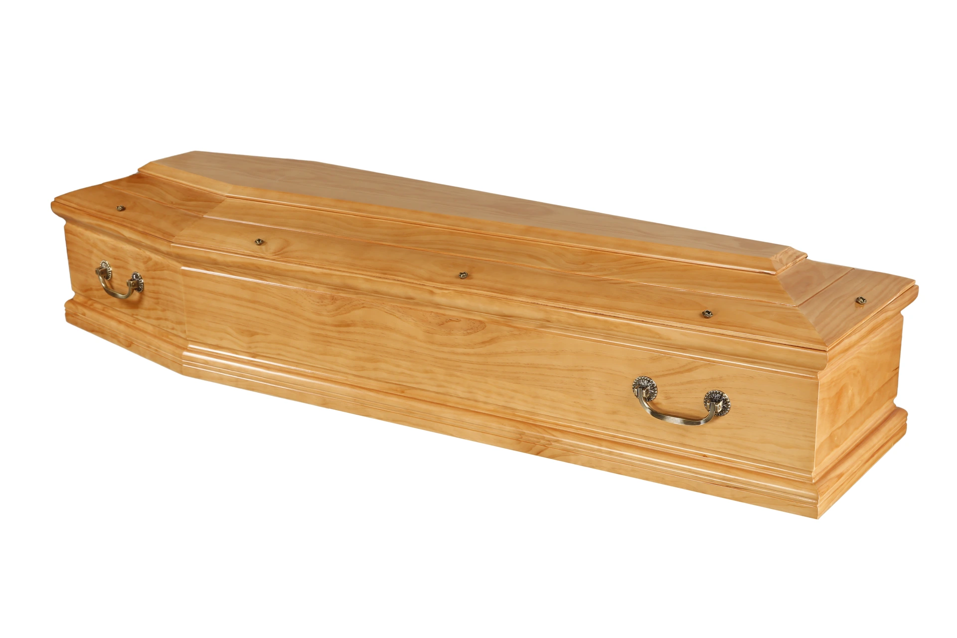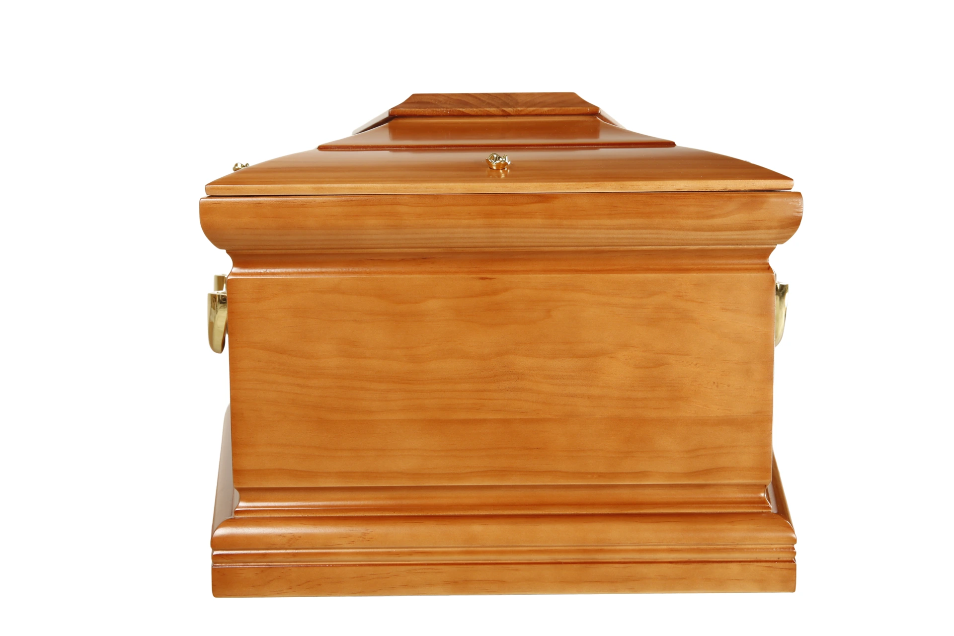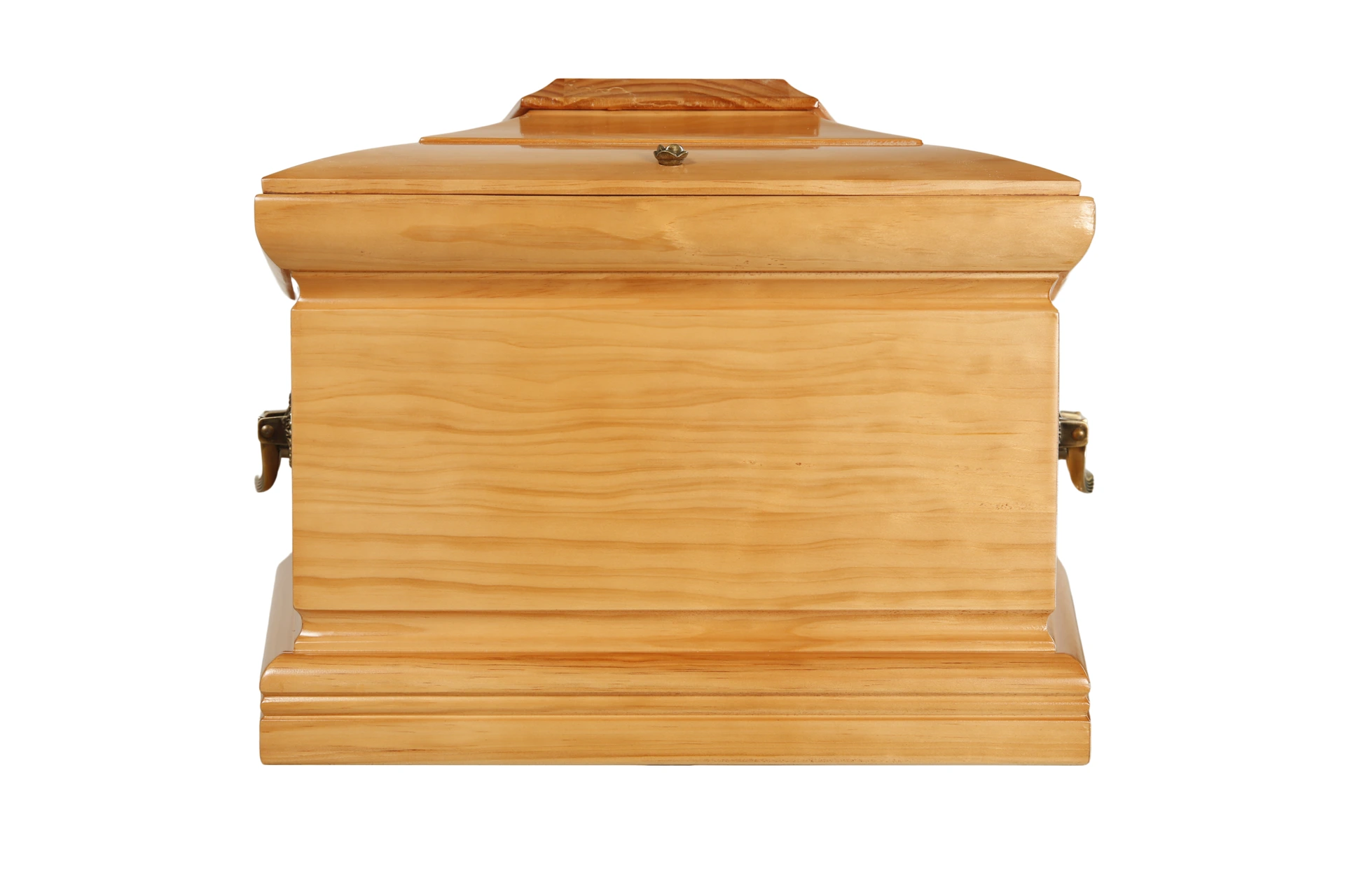 - Cercueil en pin massif au ton clair ou sombre et naturel, magnifié par un vernis brillant qui révèle la richesse du veinage du bois. Son design traditionnel, souligné par des moulures fines et des lignes harmonieuses, lui confère une allure à la fois sobre et raffinée. La pièce se distingue par une imposante sculpture représentant une scène détaillée, ajoutant une dimension symbolique et un caractère unique à l’ensemble. Un modèle digne et prestigieux, idéal pour une cérémonie marquée par le respect et la solennité.
