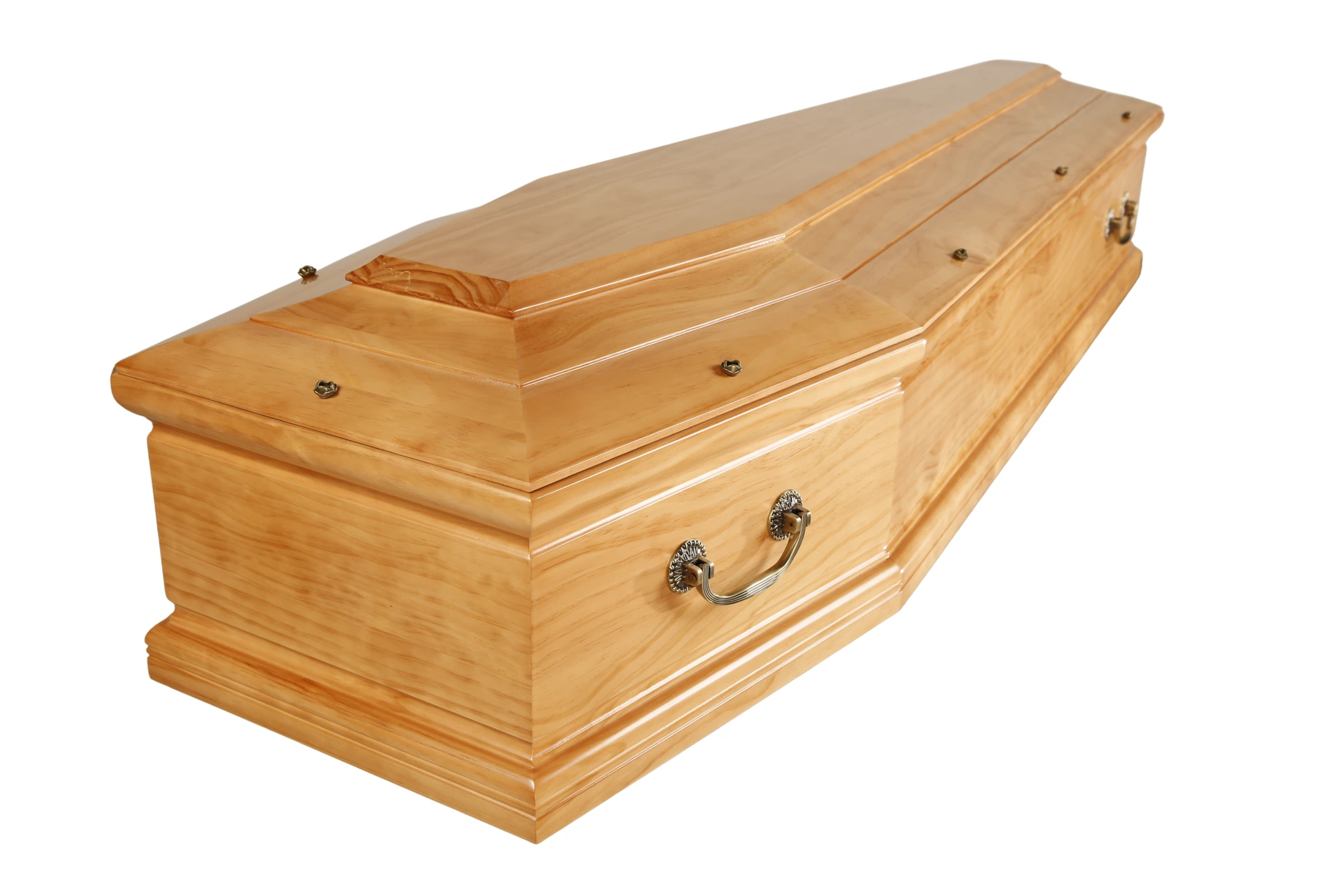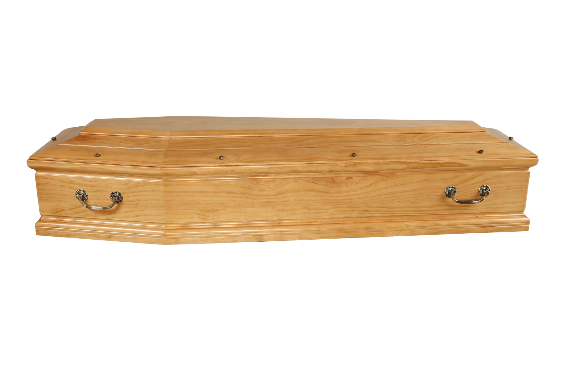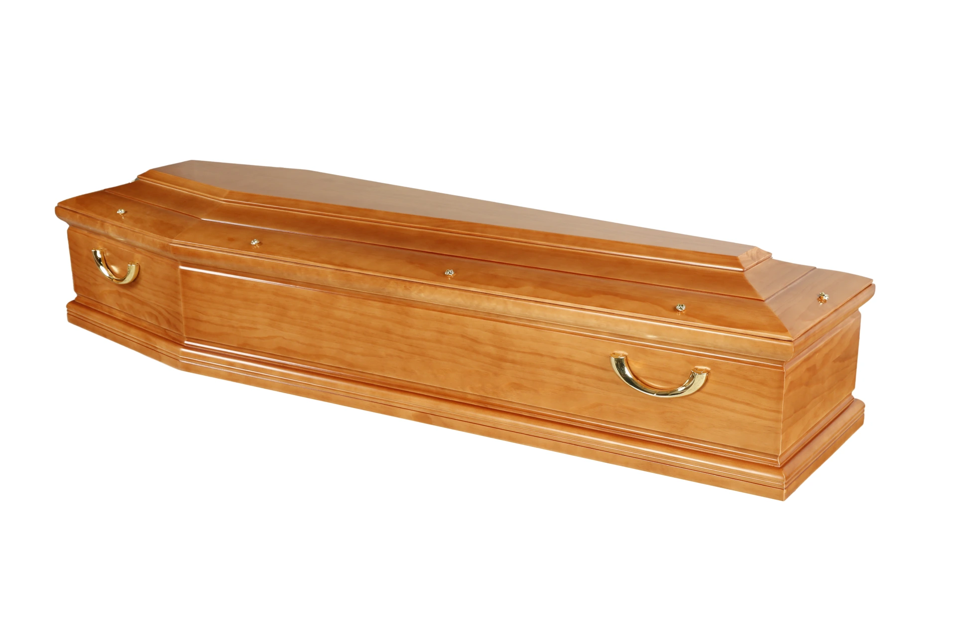 - Cercueil en pin massif au ton clair ou sombre et naturel, magnifié par un vernis brillant qui révèle la richesse du veinage du bois. Son design traditionnel, souligné par des moulures fines et des lignes harmonieuses, lui confère une allure à la fois sobre et raffinée. La pièce se distingue par une imposante sculpture représentant une scène détaillée, ajoutant une dimension symbolique et un caractère unique à l’ensemble. Un modèle digne et prestigieux, idéal pour une cérémonie marquée par le respect et la solennité.