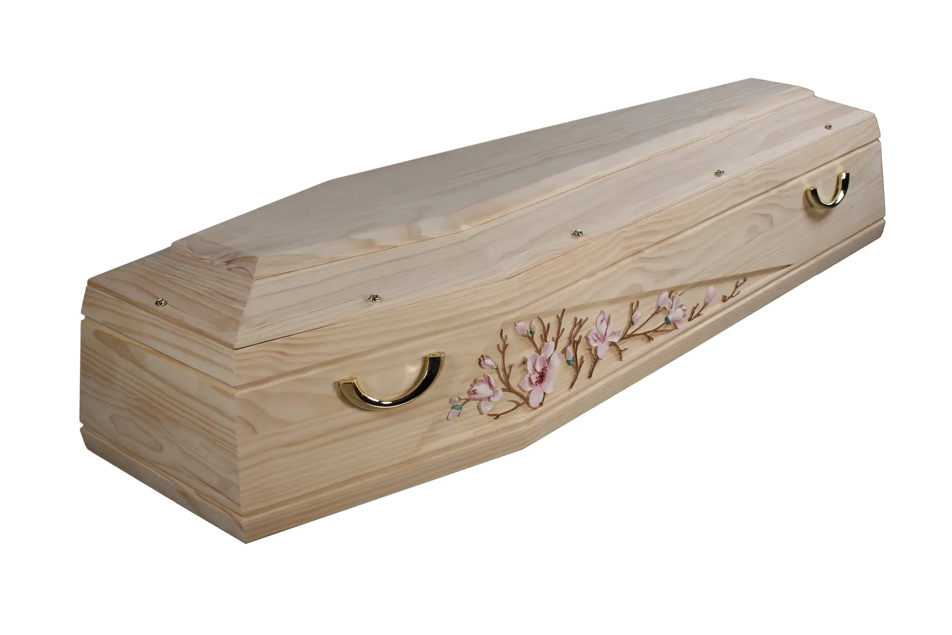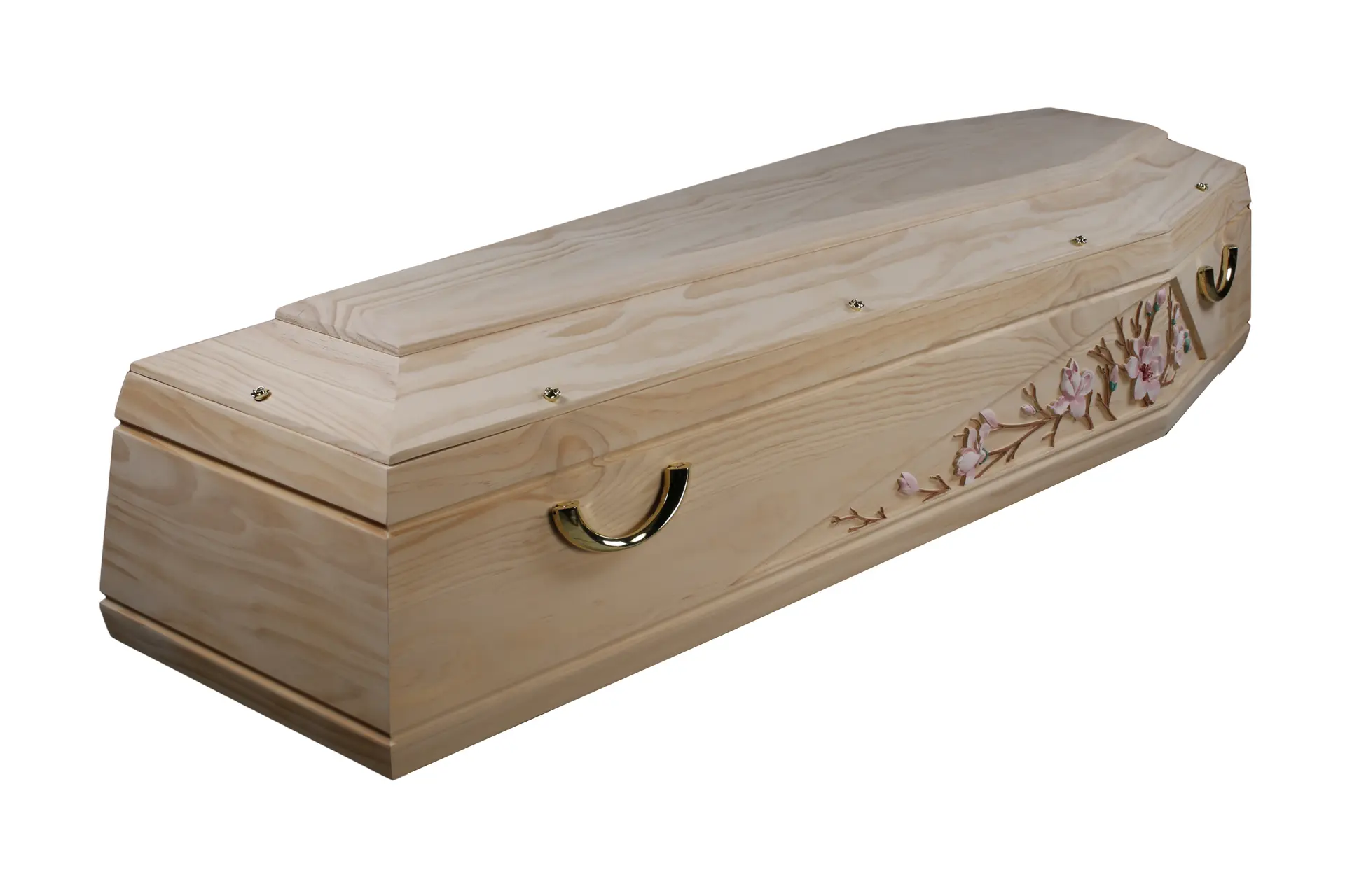 - Cercueil en pin massif au ton clair et naturel brute, laissant apparaître un veinage doux et harmonieux.