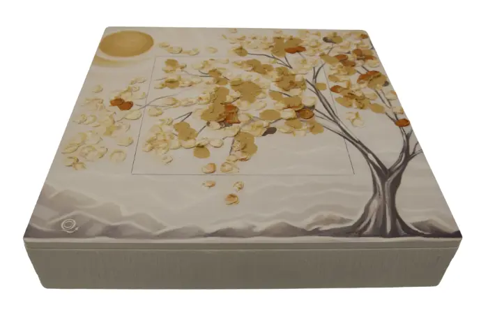 Urne cinéraire conçue sous forme de cadre mural, permettant une intégration discrète et harmonieuse dans un intérieur. Sa façade présente une illustration artistique d’un arbre en relief, aux teintes douces et naturelles, symbole de vie, de mémoire et de continuité. Son design moderne, poétique et apaisant en fait une solution élégante pour conserver les cendres dans un environnement intime, sans exposition ostentatoire.
